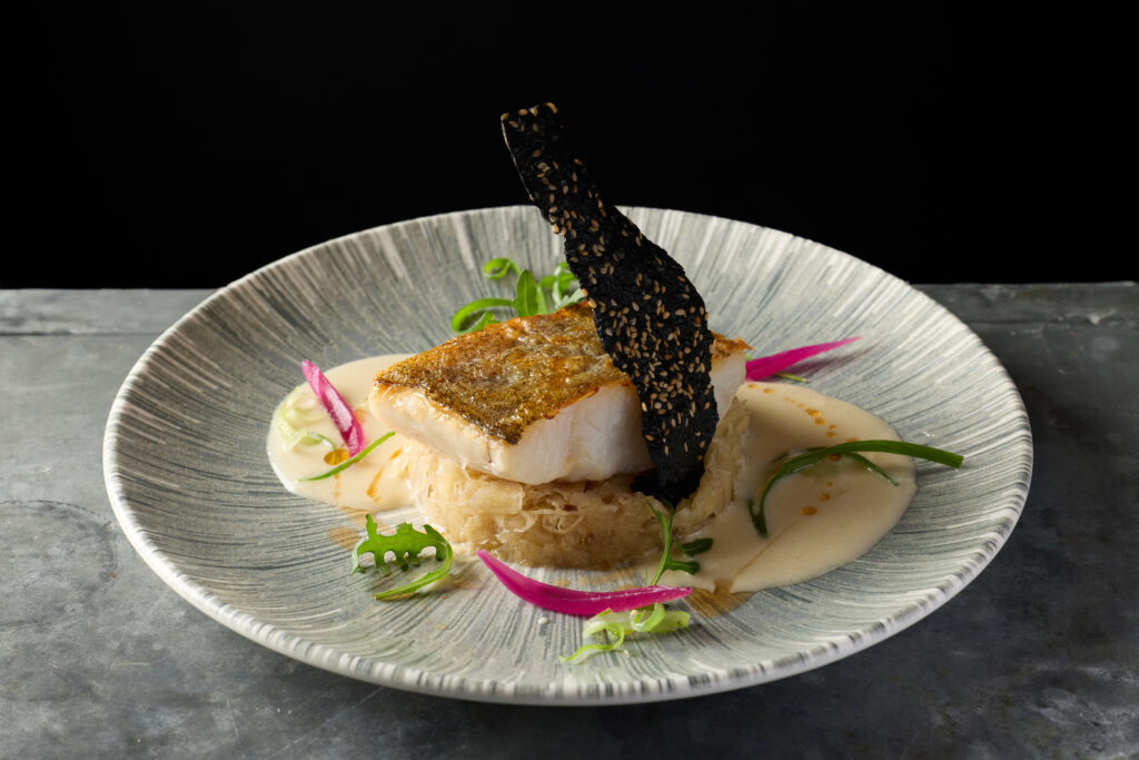 Médaillon de Lotte au Safran d’Alsace, Légumes racines d’Hiver glacés. Vin conseillé : Loire -Terre de l’Elu – Domaine ROC’H AVEL – VDF 2023 – 12cl à 7,50€ la Bt à 28,00€